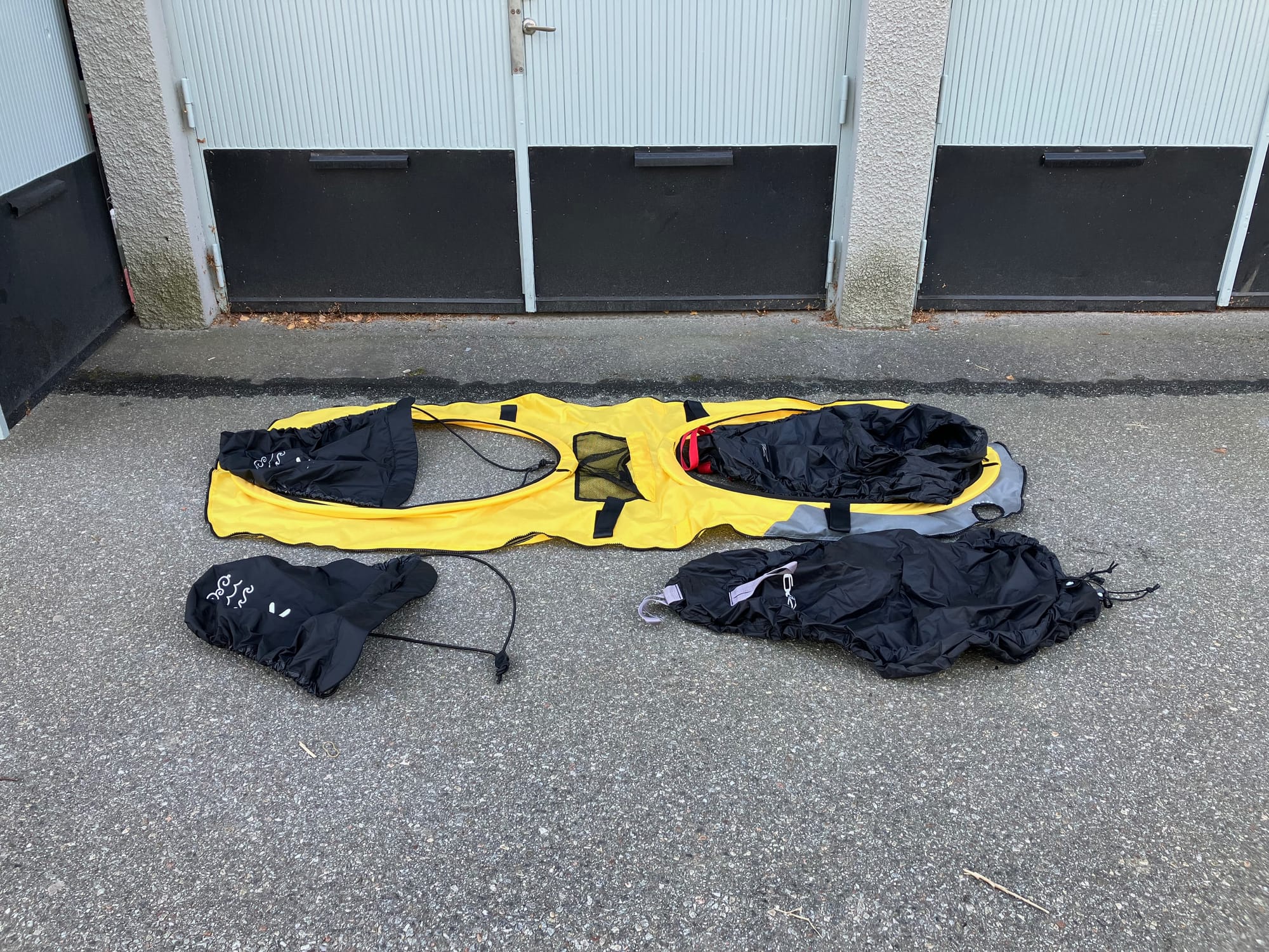 Av nÄgon anledning ingick inte paddlar nÀr jag köpte kajaken frÄn XXL i Bromma, sommaren 2022. Vill du köpa min kajak fÄr du alltsÄ skaffa paddlar pÄ egen hand. I gengÀld fÄr du en massa tillbehör som inte ingick vid köpet. TvÄ sommarkapell frÄn Hiko, ett vanligt kapell samt ett transportkapell frÄn Zegul. En extra pump pÄ 2 à 2000 cc. Originalpumpen Àr pÄ 2 à 1100 cc. Extra pumpmunstycken samt en nyckel för ventilerna ingÄr ocksÄ.
